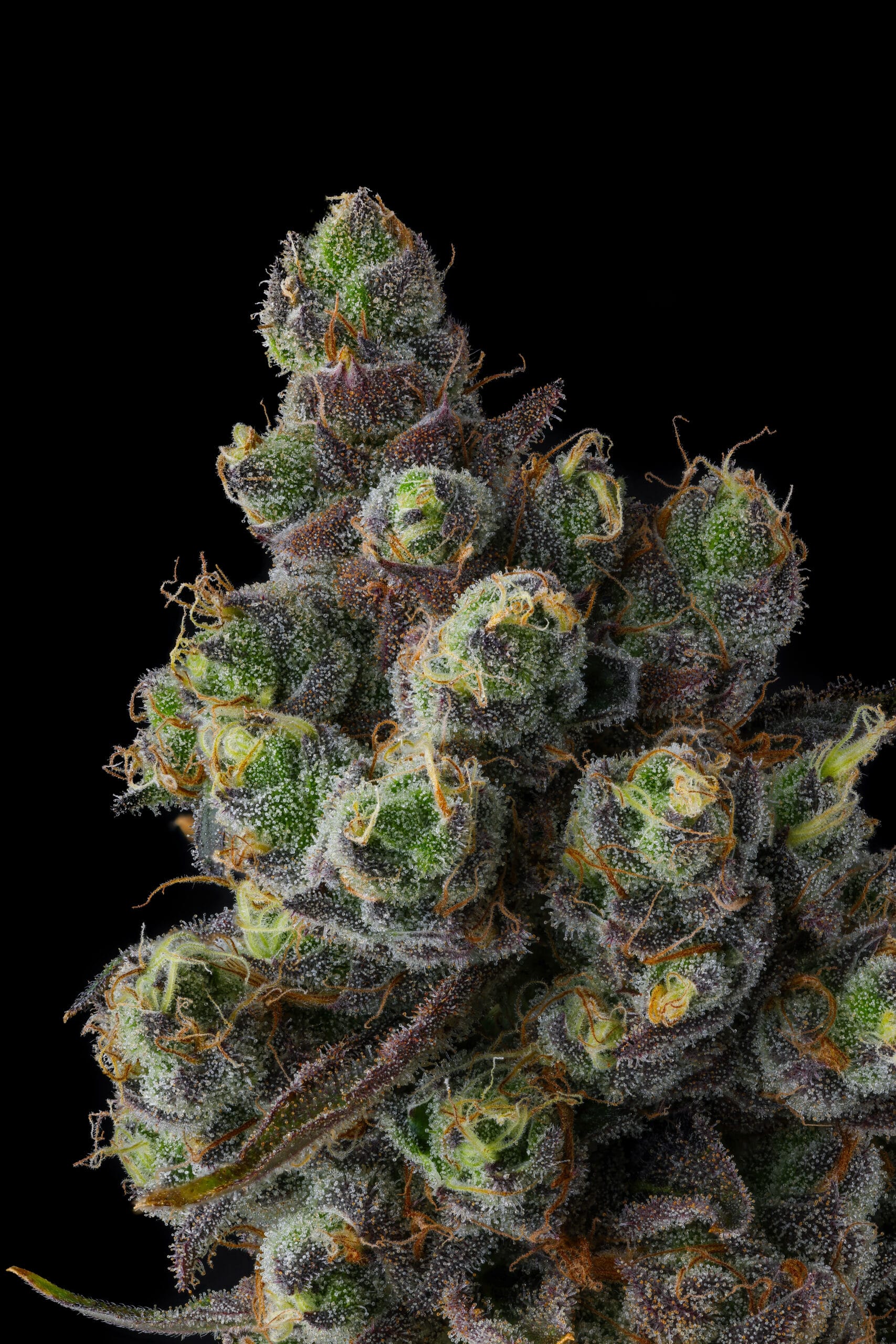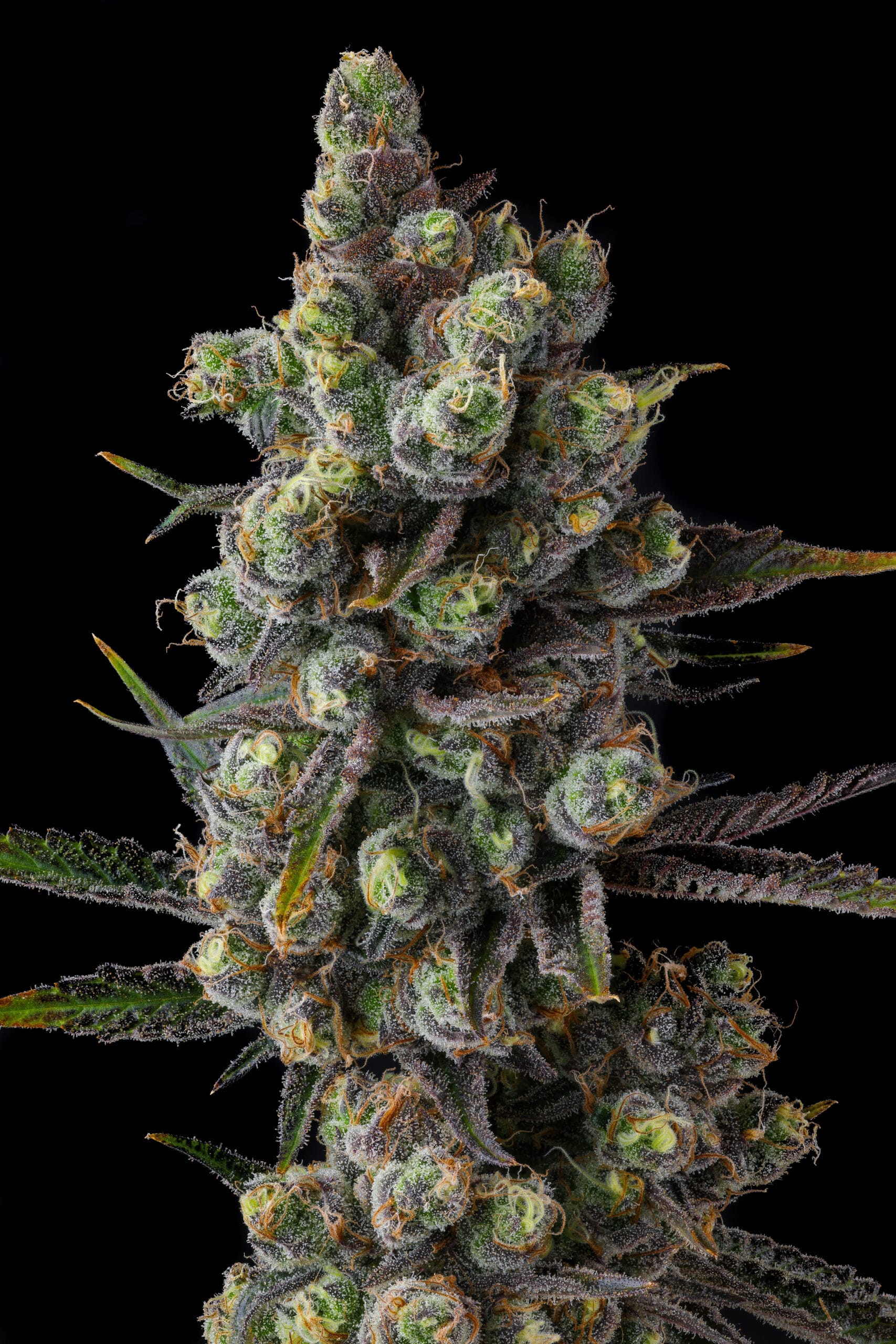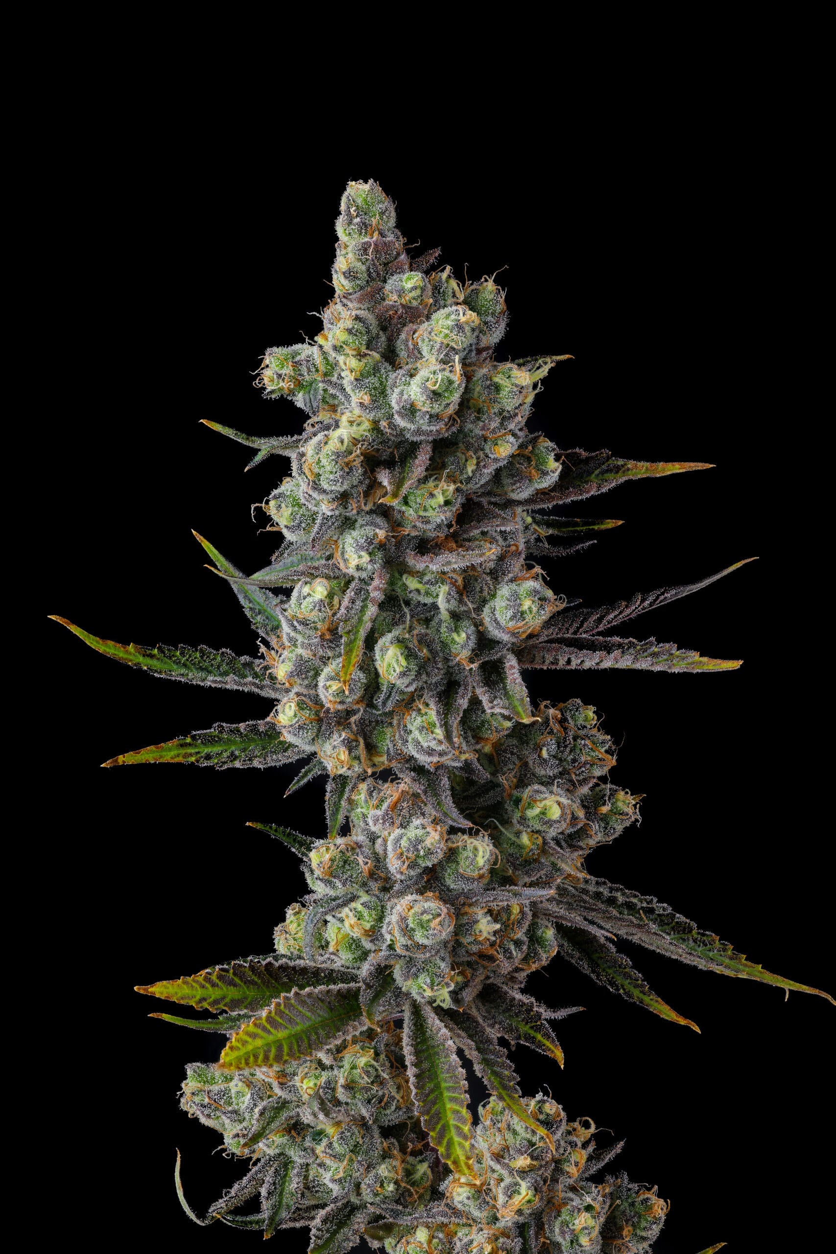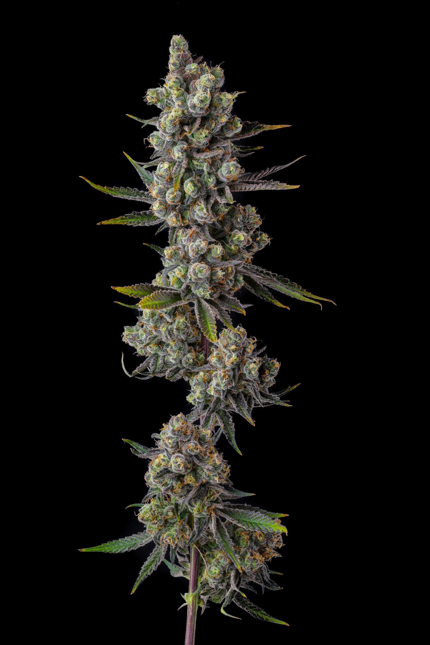 No cultivo, Cellar Stash apresenta colas densas e cobertas de resina, com uma mistura impressionante de roxos profundos e verdes-limão, chamando atenção em qualquer jardim.