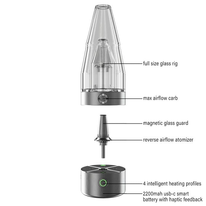 Secondly, the DabX team designed the GO to prevent any plastics near the airpath, producing a more pure-flavored dab. The heated vapor from your extracts travels through ceramic, stainless steel, glass, and water to reach you clean. Therefore, the design stops any plastic or reclaim taste and contamination during your dab session.